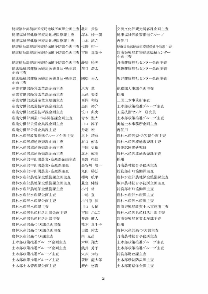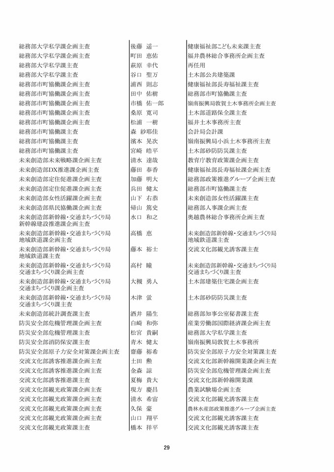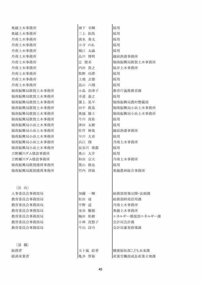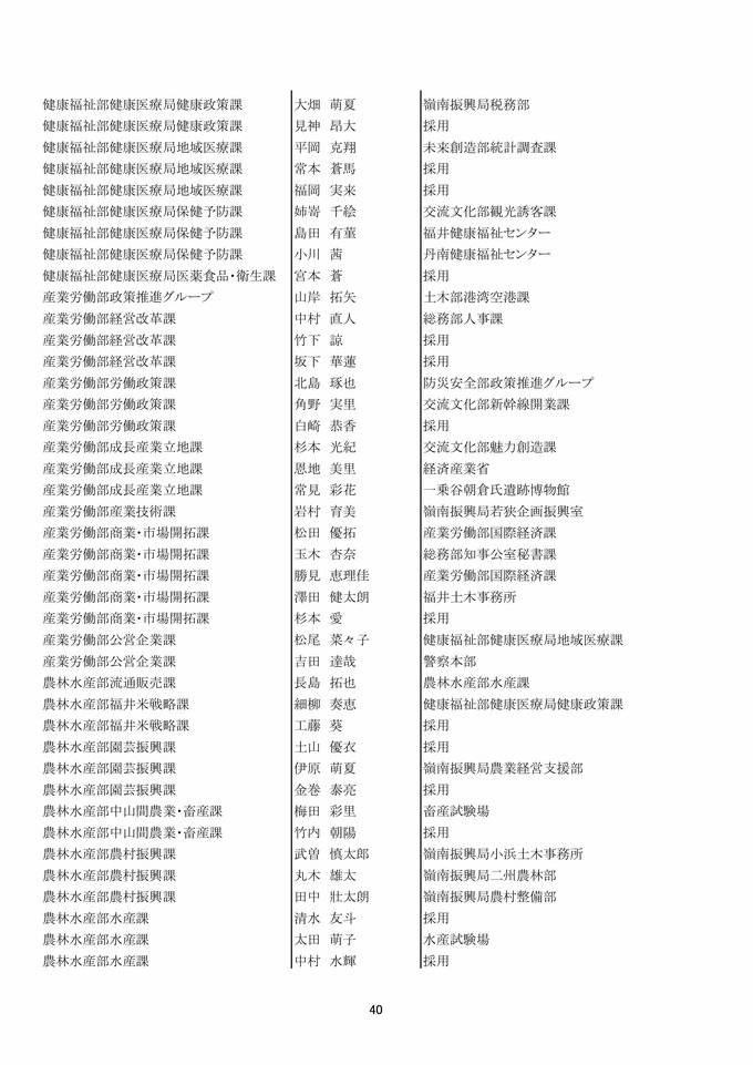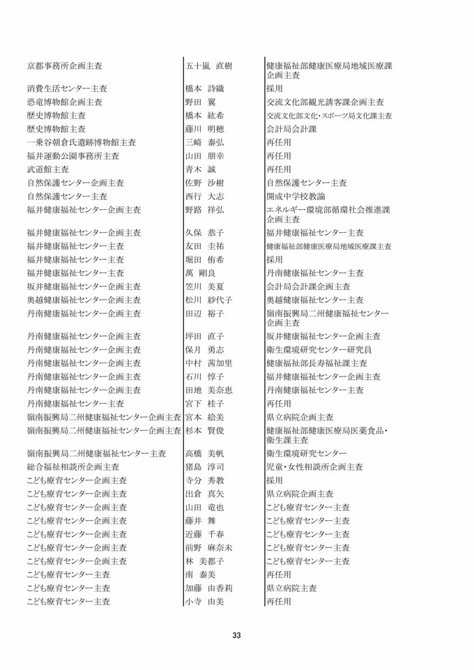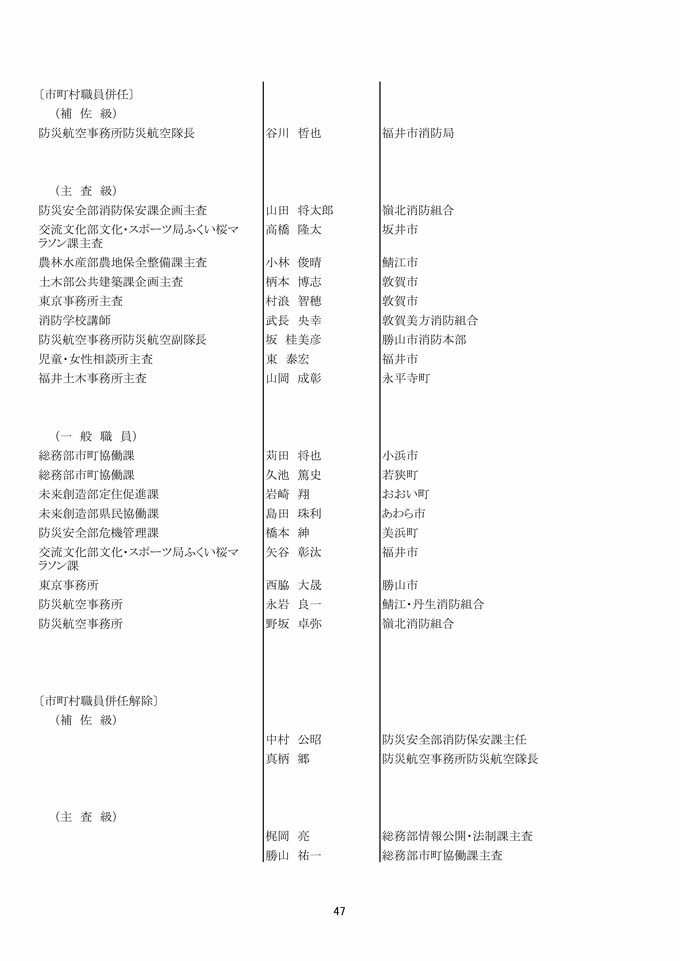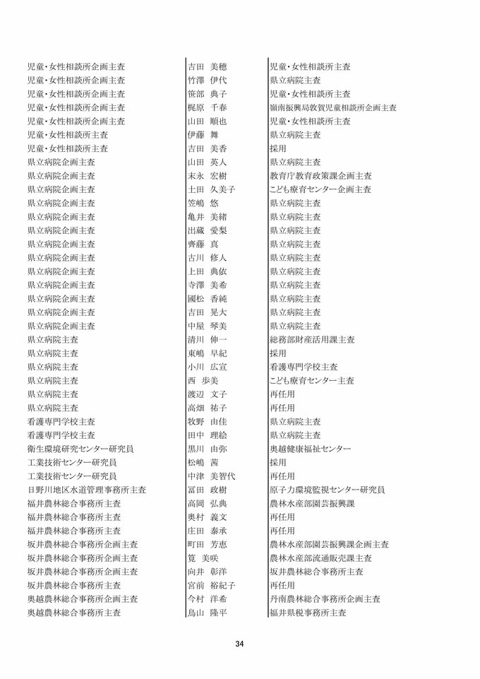 福井県 県職員人事異動 「インバウンド交流課」など観光3課を新設!女性管理職が過去最多の127人で25%越え【2025年度 令和7年度 全員掲載】 2025年4月1日(火) 17:49 福井 福井県職員人事異動 【知事部局】