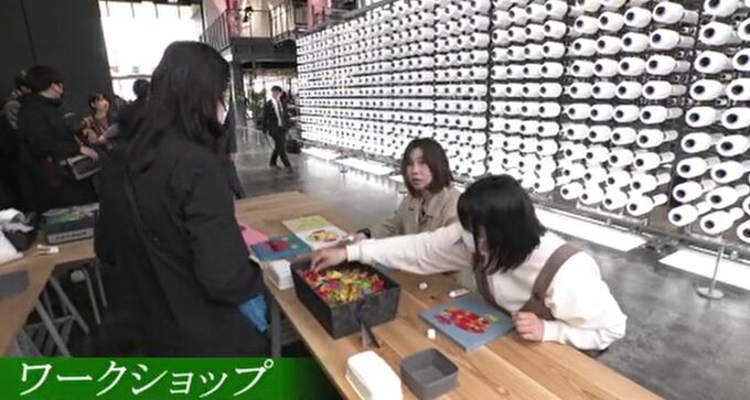 さらにこちらは、生地の端材を使ってアートを完成させるワークショップ。