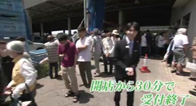 久々江龍飛フィールドキャスター「開店から30分しかたっていないのですが、今日の受付は終了しました」仕方なく店を後にする人の姿も見られました。