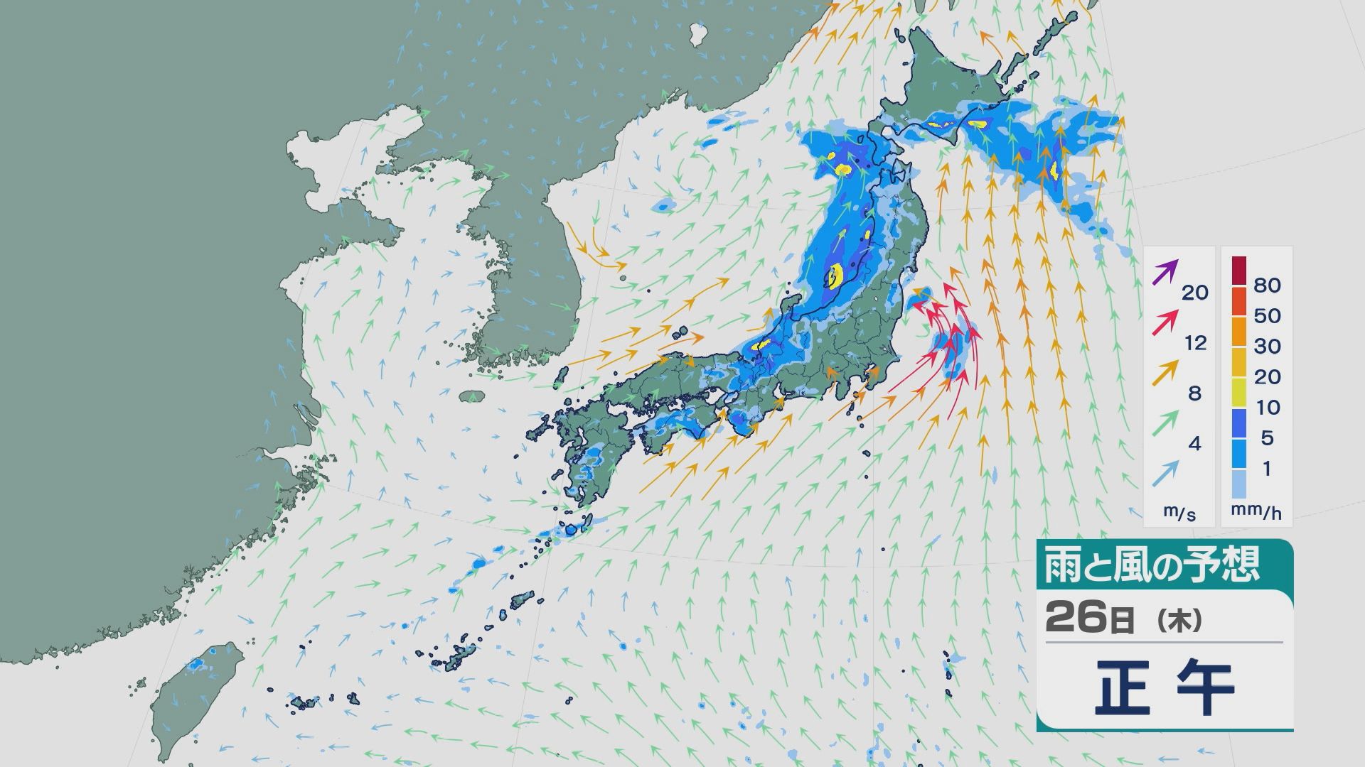 26日は、寒冷前線の通過にともない北陸や東北で雨が激しく降るところがありそうです。