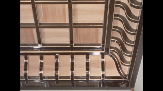 文字通り、天井の木材の縁に金があしらわれて、壁に近い部分には、曲げ加工がされているように見えます。