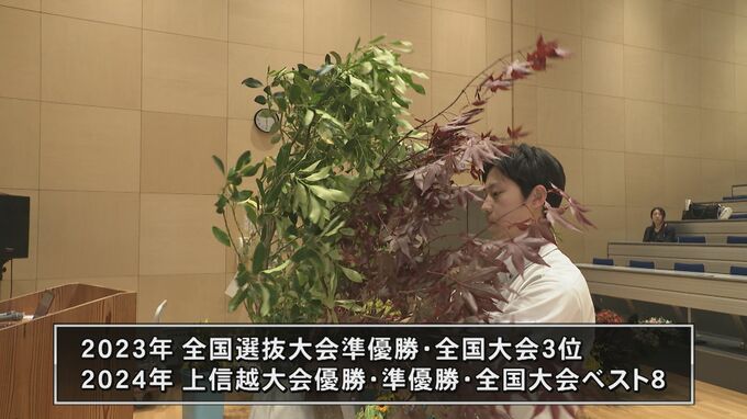 生花部部長 秋田幸龍さん(建築科3年)「感性もありますし、先生の教えもちゃんと聞いて生けています」