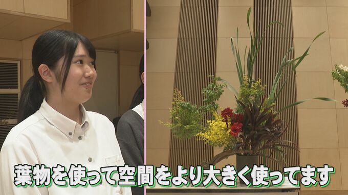 生花部の生徒「葉物を使って、空間をより大きく使ってます。」