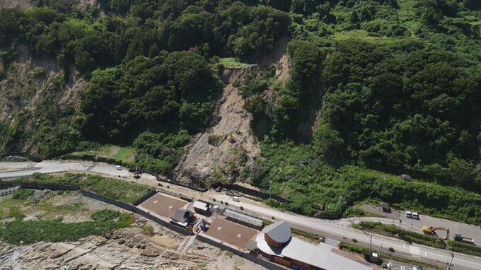一方、珠洲市沿岸部の道の駅すず塩田村と珠洲市清水町の間では11日、道路沿いの斜面が幅およそ30メートル、高さおよそ40メートルにわたって崩落しました。