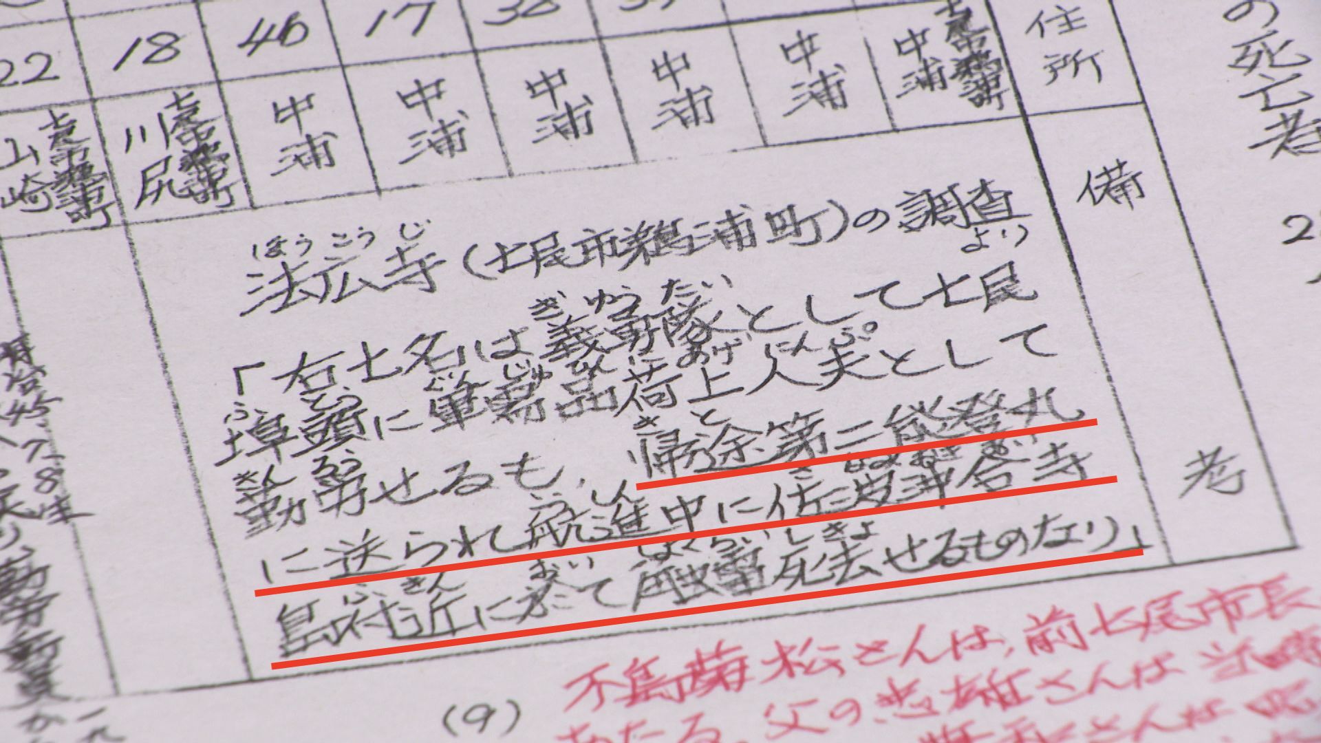 終戦から40年が経とうとしていた1983年、角三さんは小学校の教え子や県教職員組合七尾支部のメンバーらとともに住民への聞き取りを始めました。