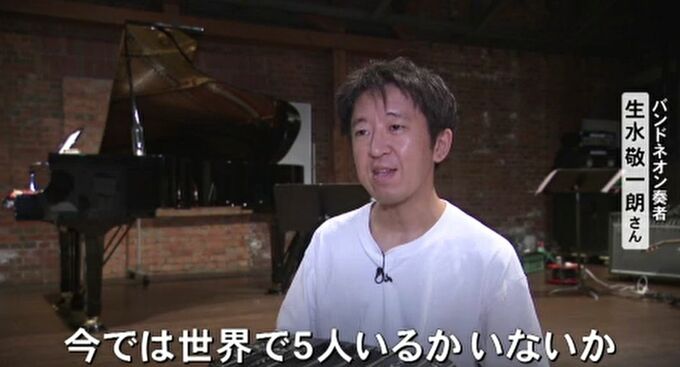 クラシックを演奏するバンドネオン奏者は世界的に珍しいと話します。