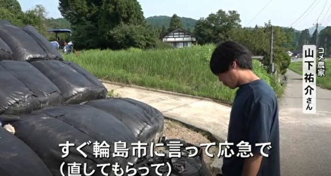 コメ農家・山下祐介さん「これです。7日の朝。とりあえず応急で押さえてもらって」