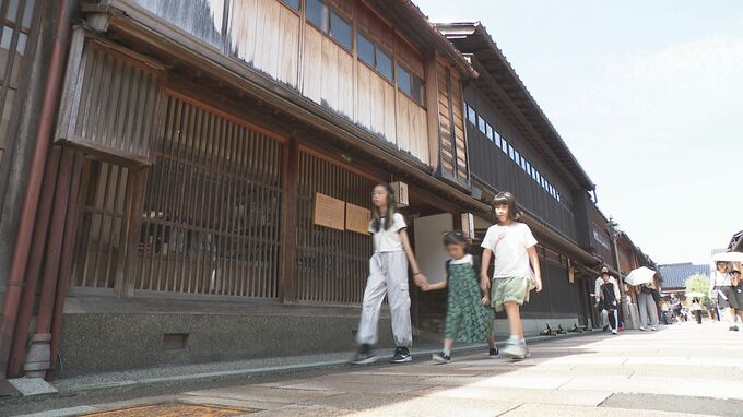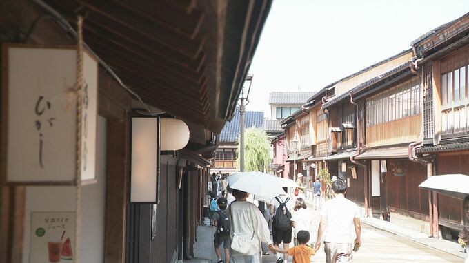 仙台からの観光客の男性「金沢は日差しが強い。仙台と比べると結構強い。直射日光えぐいなぁと思ってます。焼ける暑さ。日傘買ってくればなって思ってます。全力で友人の日傘に一緒に入って対策している」