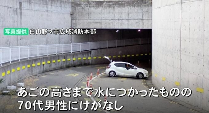 白山市土木課 泉慧拓さん「コーンで規制はしていました。水没したのがアンダーパスのカーブした先だったので(冠水を)発見するのが遅れて入ってしまった状況」
