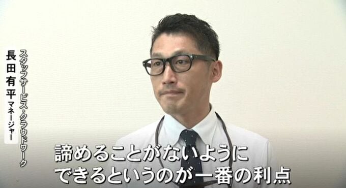 スタッフサービス・クラウドワーク 長田有平マネージャー「文字通り、自宅で仕事ができるところが一番のポイント。どうしても通勤困難な方がいる。そういった方も社会との接続を諦めることがないようにできるというのが一番の利点です」