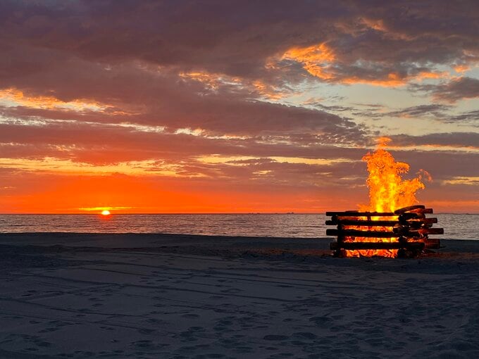 夕暮れ時には、キャンプファイヤーが灯され、日本海に沈む美しい夕焼けや空いっぱいに広がるたくさんの星々とのコラボレーションを楽しむことができました。
