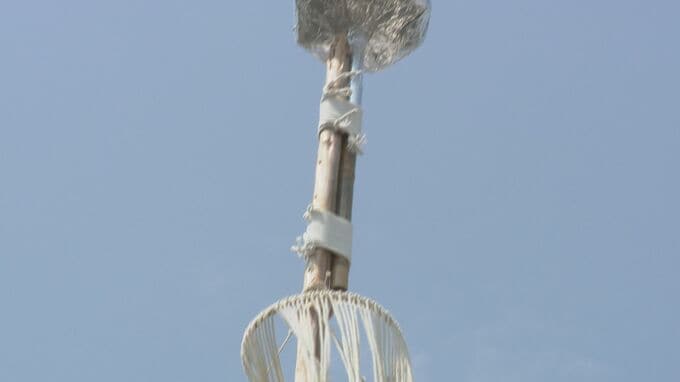 Q折れた?「折れたけど…けががなくてまず何より。いつも祭りの時に留めるときは縛る所があるけどきょうは縛る所が無くて…」