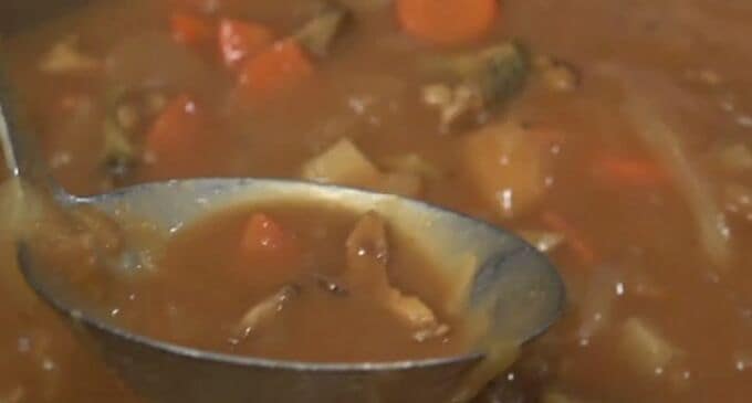 6つの小学校が入る輪島市河井町の仮設校舎で子どもたちが楽しみにする給食で提供されたのは、「サザエカレー」です。