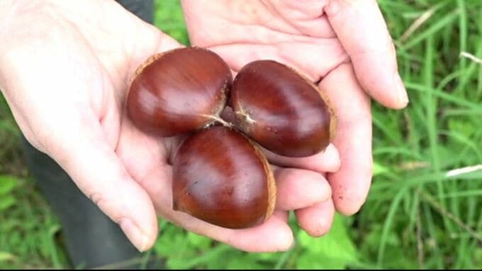 訪れた人「栗の甘露煮と栗ご飯と、それから煮て潰してお砂糖いれて茶巾で絞ったお菓子とか色々考えています。へへへ」