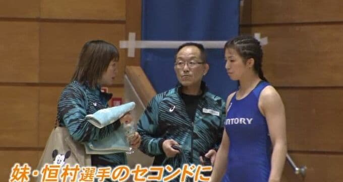 金城さんはシニア59キロ級に出場した妹の恒村選手をセコンドとしてサポートします。