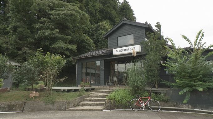 地元の石を内装に使う。滝ケ原町のカフェ。