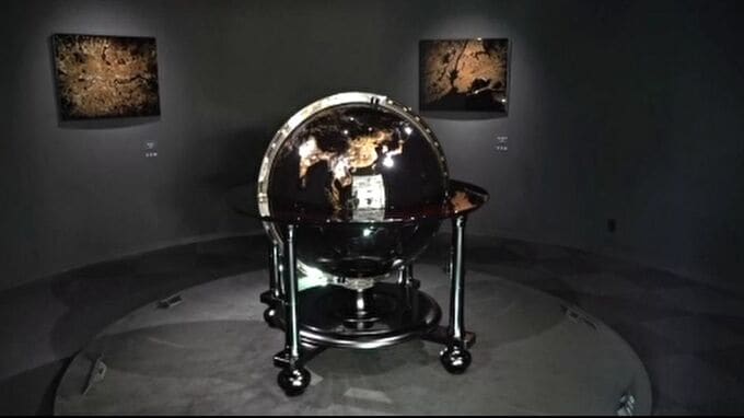直径1メートルにも及ぶ大きな輪島塗の地球儀「夜の地球」