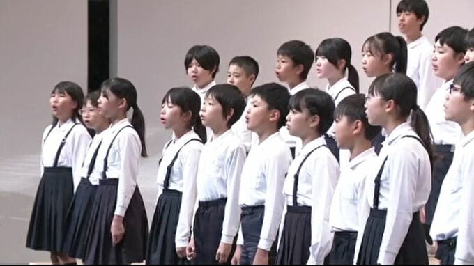 練習に励んできた5・6年生中心の小学生およそ900人が参加し、元気いっぱいな歌声を響かせました。中には地域の特色を生かし、和太鼓の演奏を披露する小学校もありました。