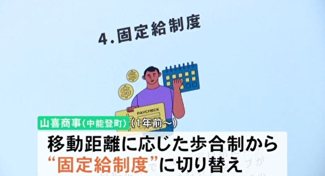 一方こちら、産業資材などを運搬する中能登町の山喜商事は、1年前から移動した距離に応じた歩合制ではなく、固定給制度に切り替えました。