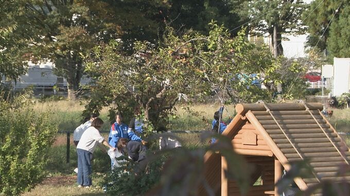 クマは近くのカキの木に引き寄せられたとみられ、こども園はカキの実を切り落とすなど対策を進めています。