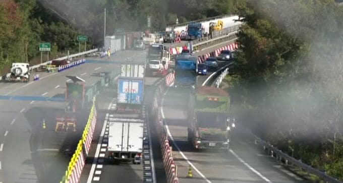 事故を目撃したドライバー「工事しているところの前で渋滞になったんですよ。よそ見していたかもしれないが、トラックが1番後ろから渋滞の列にぶつかっていった」