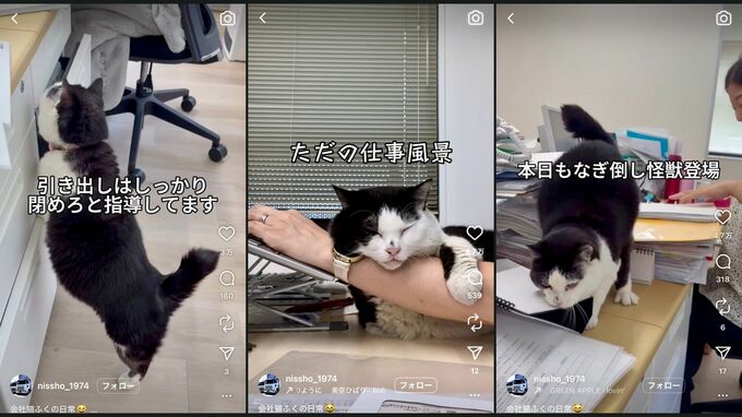 これらの業務妨害に見える行為は、社員にとって逆に良い気分転換や笑いの種となり、パワハラならぬ『にゃんハラ』と呼ばれ、喜ばれています。