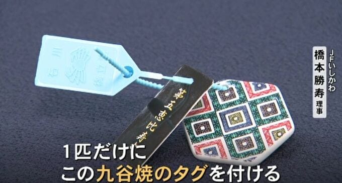 JFいしかわ・橋本勝寿理事「その日操業した中で1番いいカニ、5匹いても1匹だけ。1匹だけにこの九谷焼のタグをつける。船名、つまりどの船が獲ったか、どの船の1番推しかわかるようなたちで(販売する)」