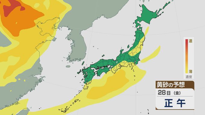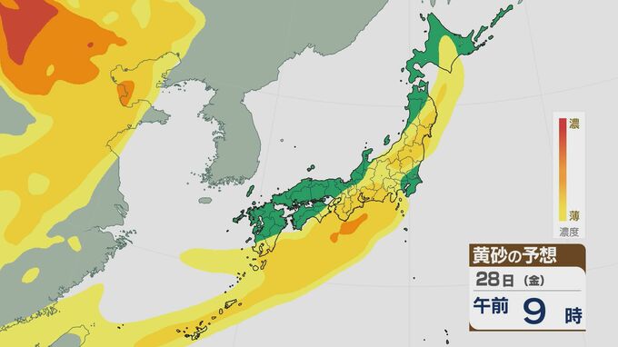 【黄砂情報】27日(木)から28日(金)にかけ西日本を中心に黄砂が飛来 九州から近畿は濃度が高い時間帯も 最新の飛来予想シミュレーション 2025年11月26日(水) 09:51 石川 28日は明け方ごろ、四国や中国地方、近畿などで高い濃度になりそうで、その後午前中は東北でも達するところがある見込みです。