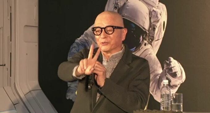 今回の対談は金沢市の三谷産業がAIなどを活用した最新のソリューションを紹介する情報フェアの一環として開いたもので、会場の金沢本社には、UFOや宇宙飛行士の写真などが埋め尽くすなど、さながら惑星に向かう宇宙船のようです。