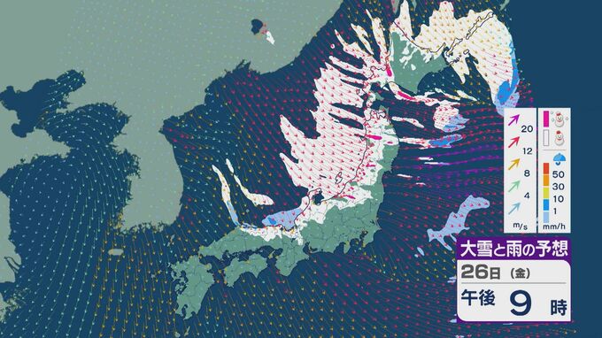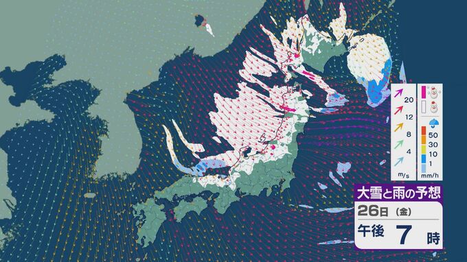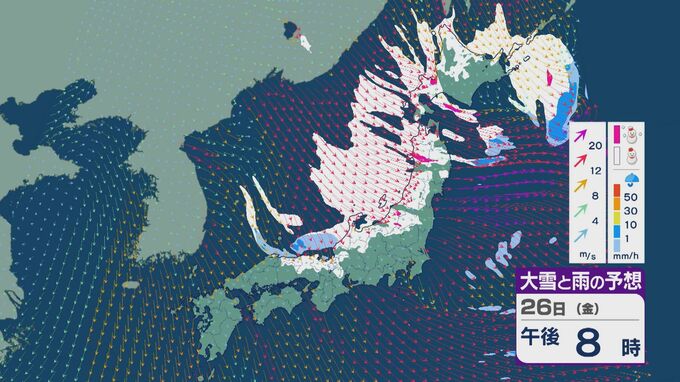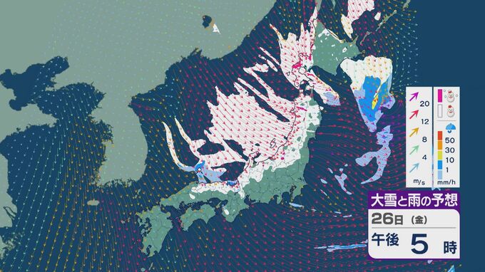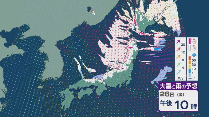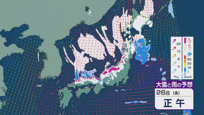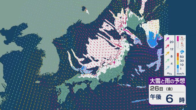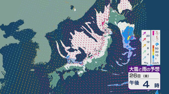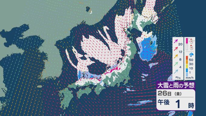 26日(金)は“寒気”と“冬型気圧配置”が強まり北陸など日本海側は大雪で荒れる天気に 交通障害など帰省への影響にも注意を 雪・雨と風シミュレーション 2025年12月24日(水) 15:41 石川 午後も、日本海側では雪が降り続く見込みです。