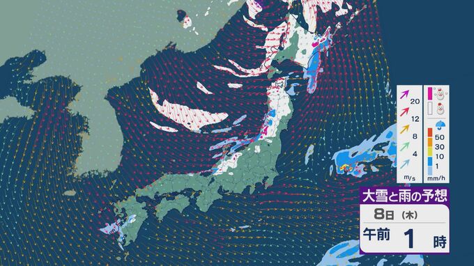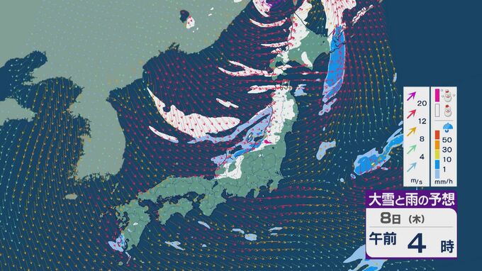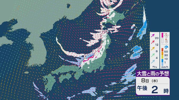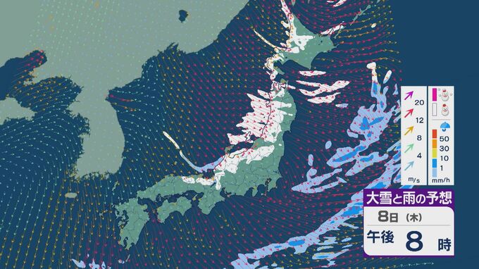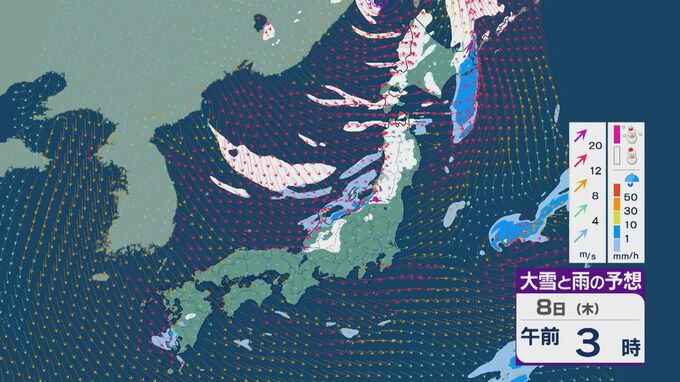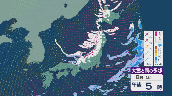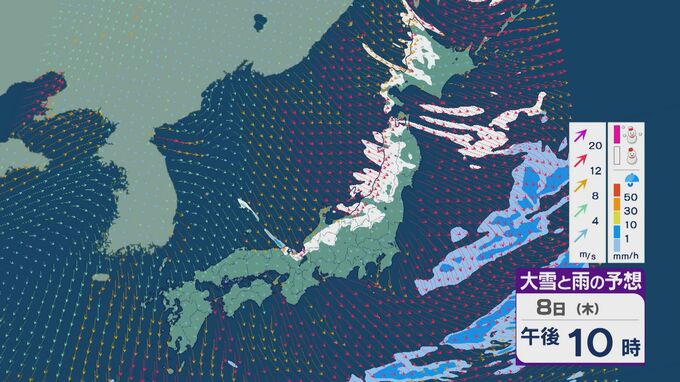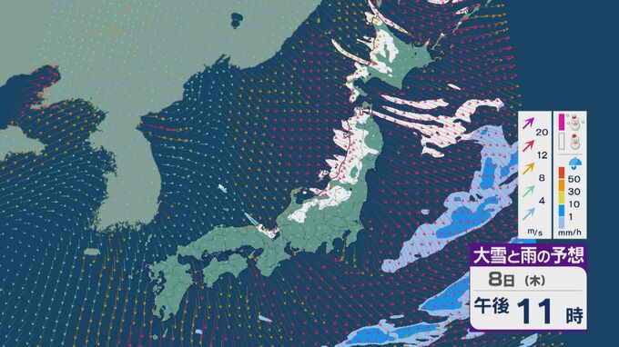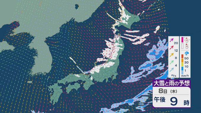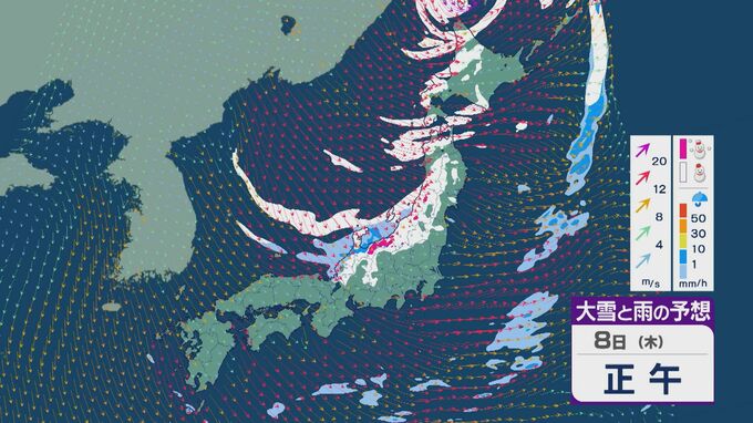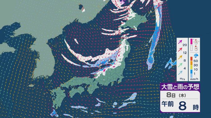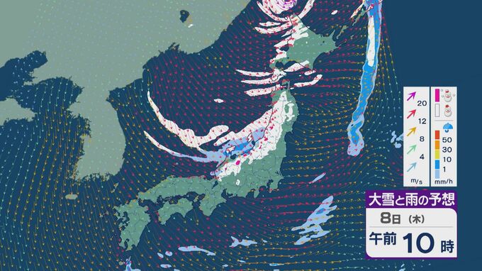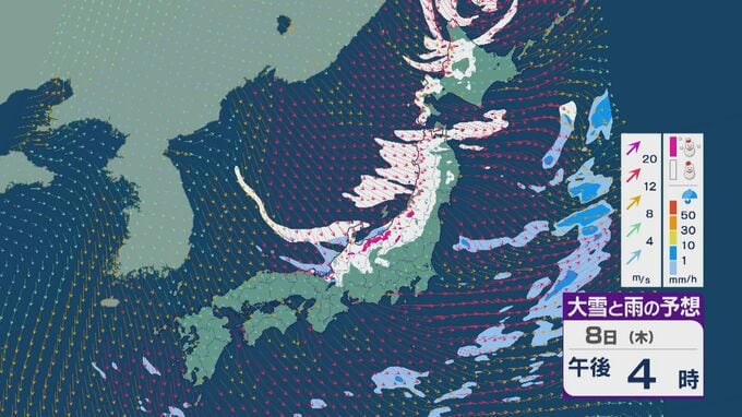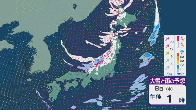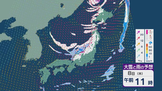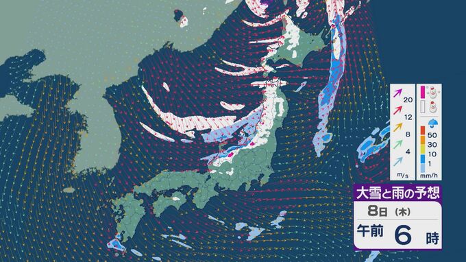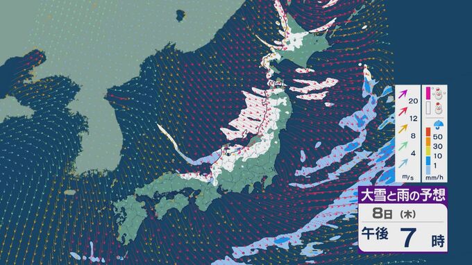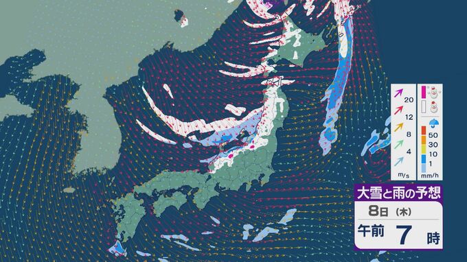 7日(水)は寒冷前線の通過で北陸は“冷たい雨”に 8日(木)は冬型気圧配置で寒気も強まり雪の降る天気に 東北の日本海側でも断続的に雪に 雪・雨と風シミュレーション 2026年1月6日(火) 14:36 石川 7日は雨が降っていた北陸などでも、上空の寒気が強まり8日には雪に変わる見込みです。 昼過ぎ以降は、北陸の沿岸部でも雪が降るでしょう。山地では大雪のところもありそうです。