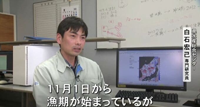 県水産総合センター・白石宏己専門研究員「11月1日から漁期が始まっているが、前年同期比で30%少なくなっている。例年と比べると少なめ」