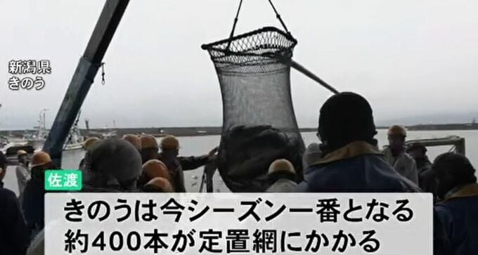 こちらも不漁が続いていましたが、年末から水揚げが増え、きのうは今シーズン一番となるおよそ400本が定置網にかかりました。