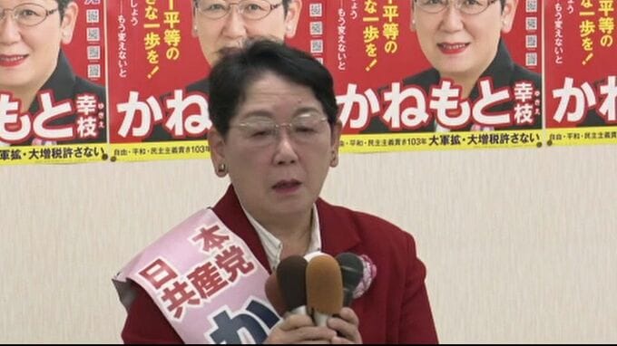 金元幸枝候補(共産・新)「セクシャルハラスメント、これは個人の尊厳を深く傷つける暴力・犯罪。女性のそんな訴えよりも新幹線だアリーナだと、それをやってほしいんだということだった。もう本当に古い古い自民党政治はお断りだ」