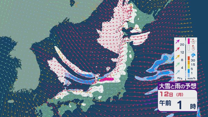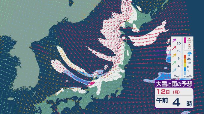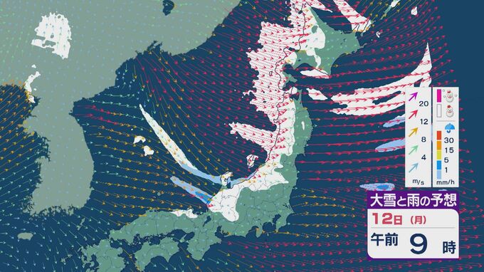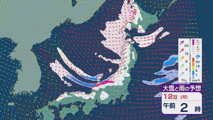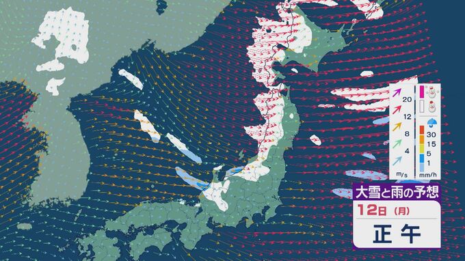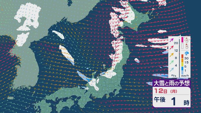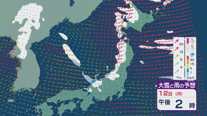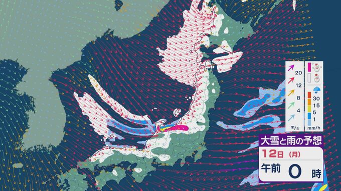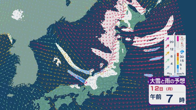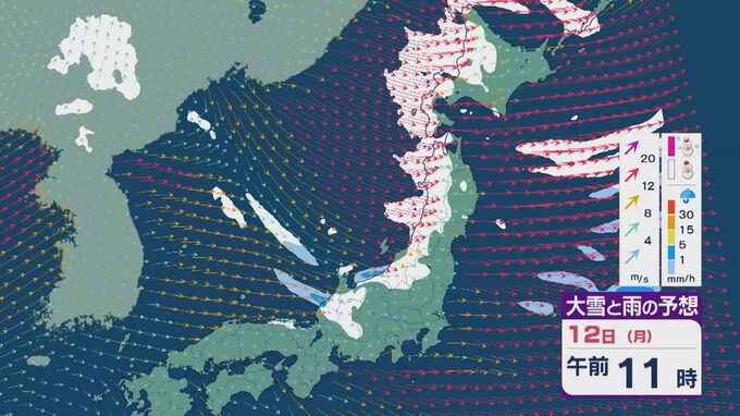 【大雪情報】低気圧が日本海を通過後“強い冬型”に 11日(日)から成人の日の12日(月)は日本海側で大雪に 24時間予想降雪量は東北で100センチ 北陸で70センチに 雪・雨と風シミュレーション 2026年1月9日(金) 11:50 石川 12日の成人の日は、午前中を中心に雪の降り方が強まるでしょう。