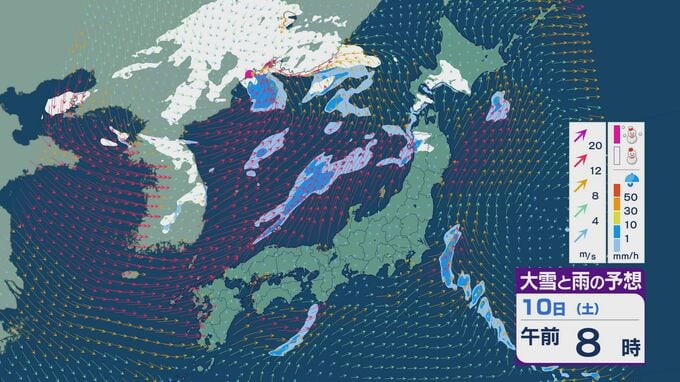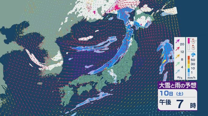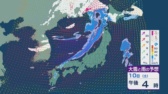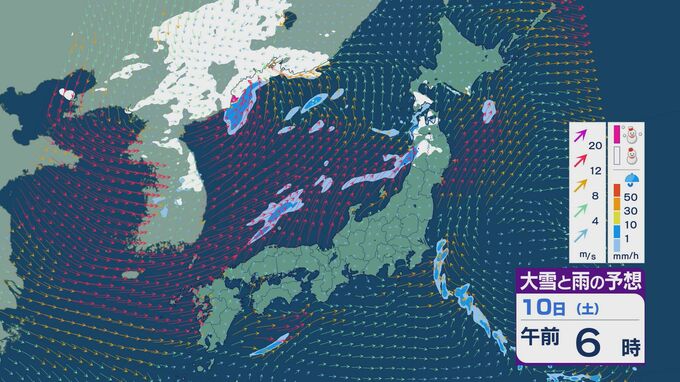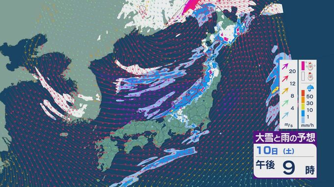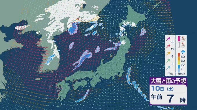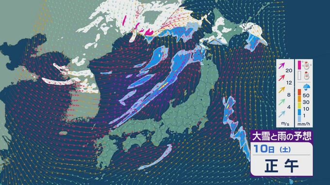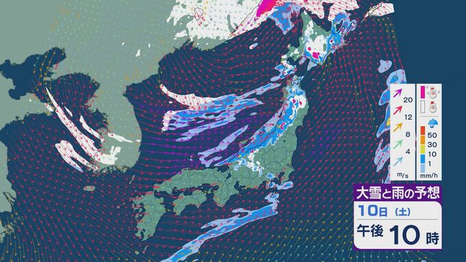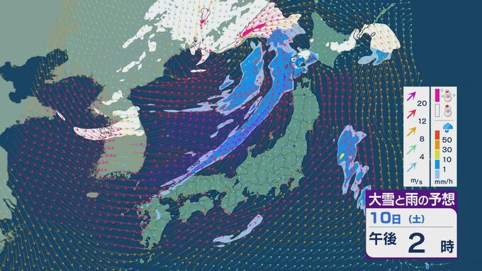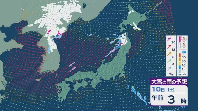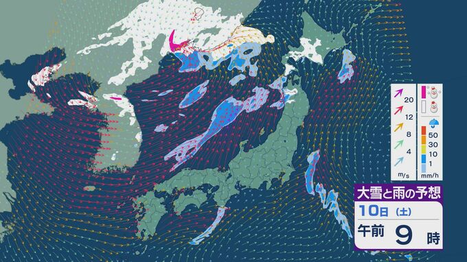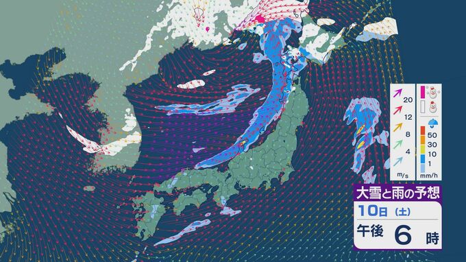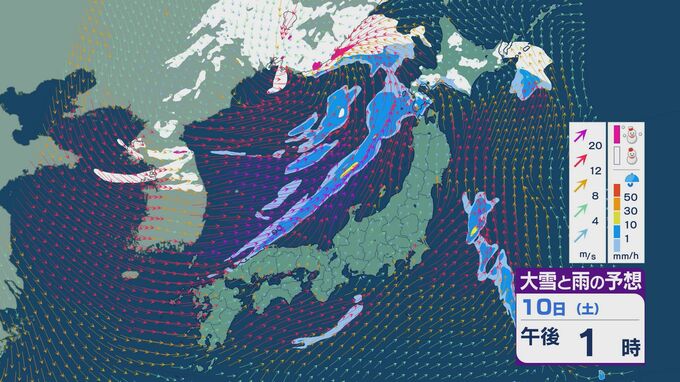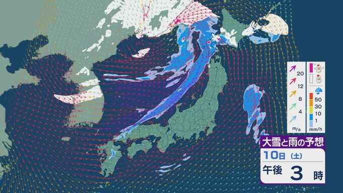 【大雪情報】11日(日)は強い冬型に 大雪をもたらす「JPCZ」が発生し東北日本海側に その後は南下し北陸にも影響のおそれ 3連休は交通障害などに注意・警戒を雪・雨と風シミュレーション 2026年1月9日(金) 18:37 石川 3連休の雪・雨と風の予想ですが、10日は低気圧の通過にともない夕方あたりから日本海側の広い範囲で雨や雪が降るでしょう。