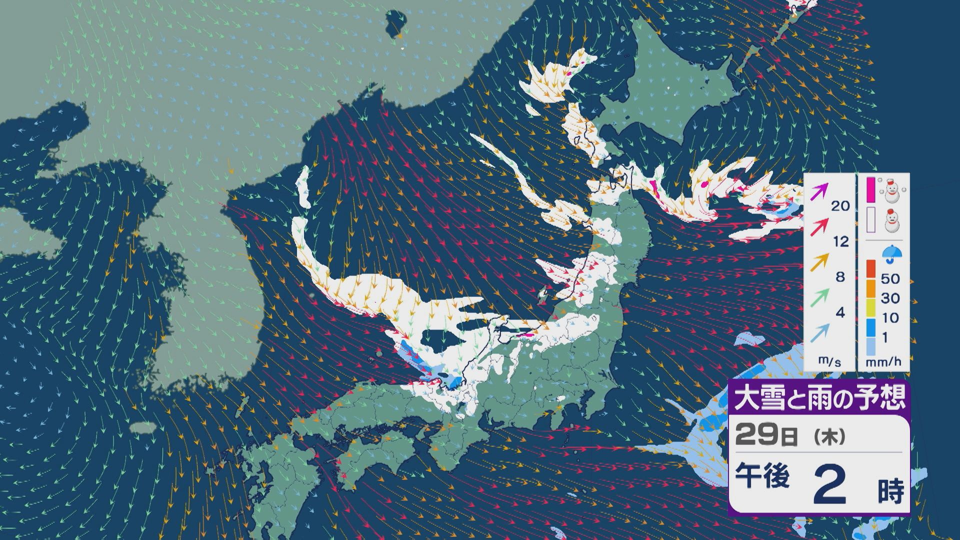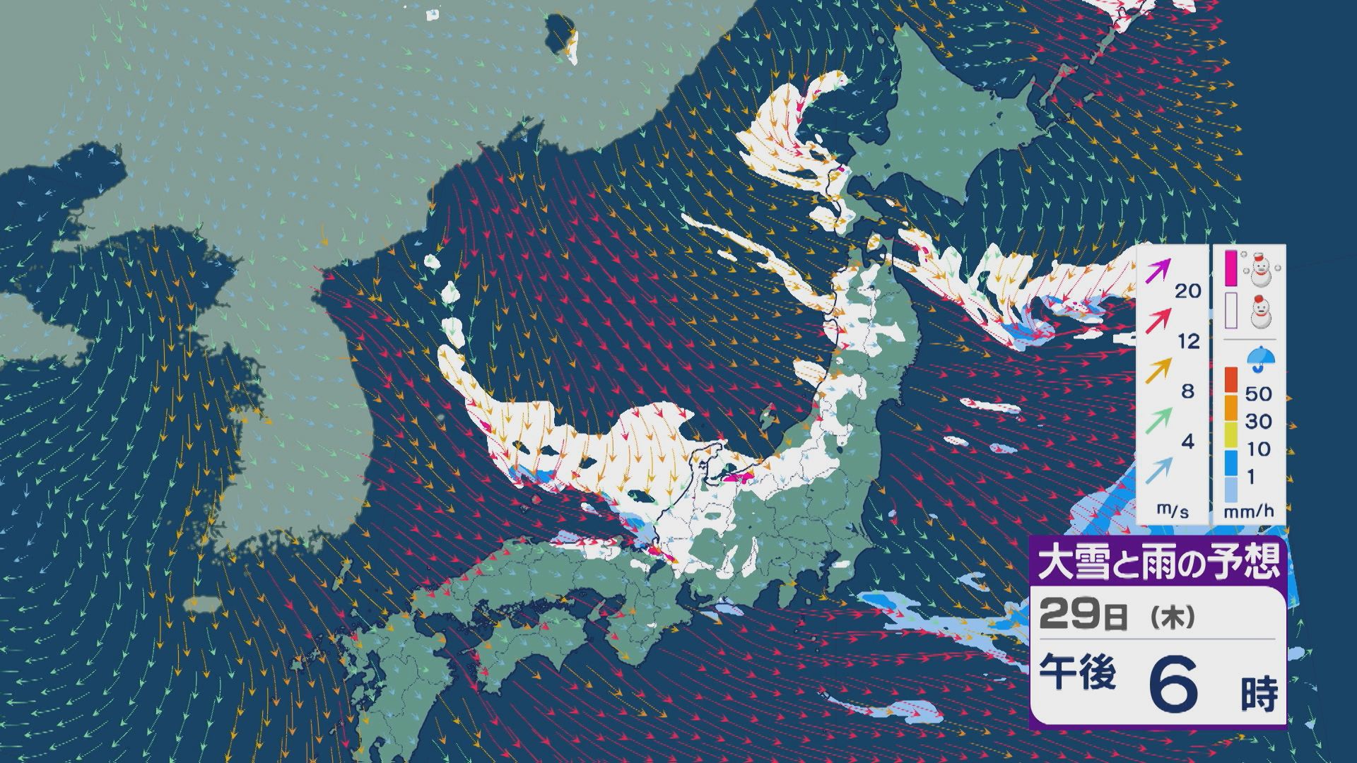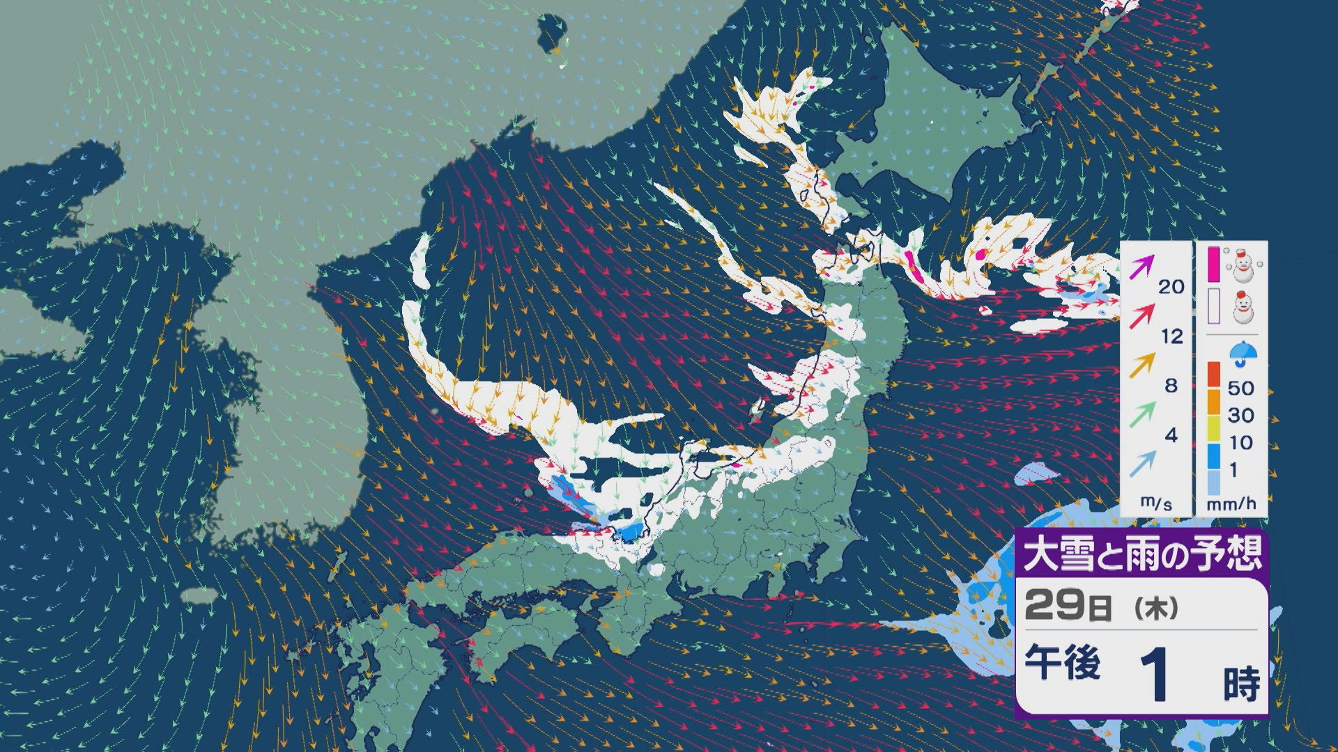 【関東でも、雪か】東北地方と東日本~西日本の日本海側を中心に大雪の見込み【雪のシミュレーション掲載】気象庁 29日~30日予想降雪量 北陸70センチ 東海40センチ 近畿50センチ(~午後6時・多い所)東日本~西日本の太平洋側で大雪になる所も 4時間前