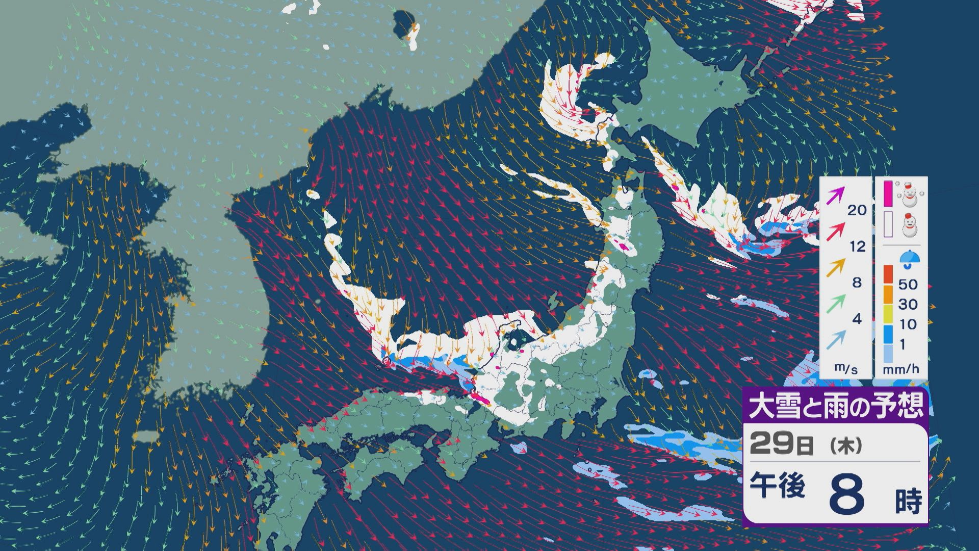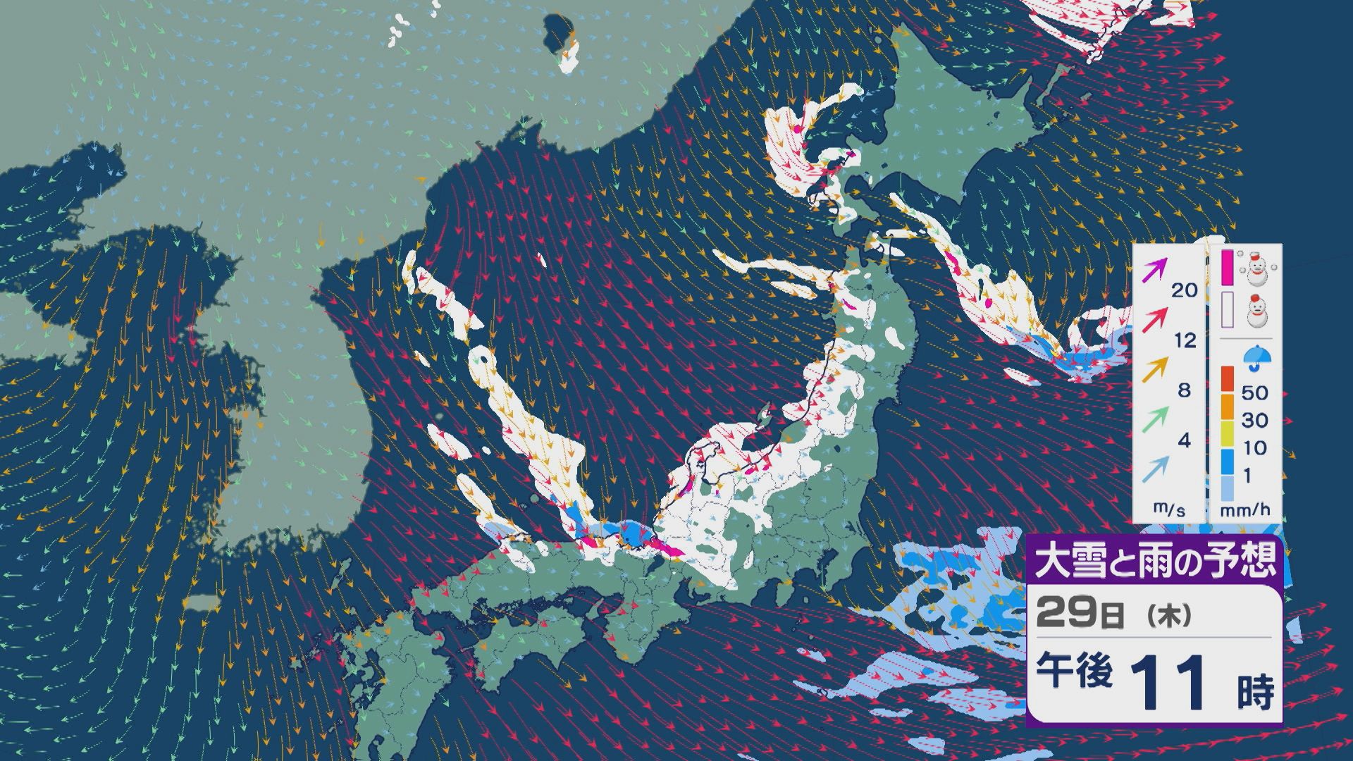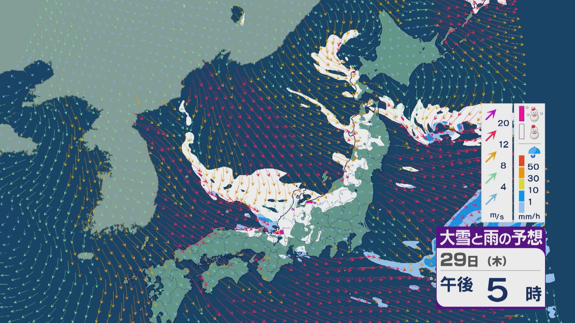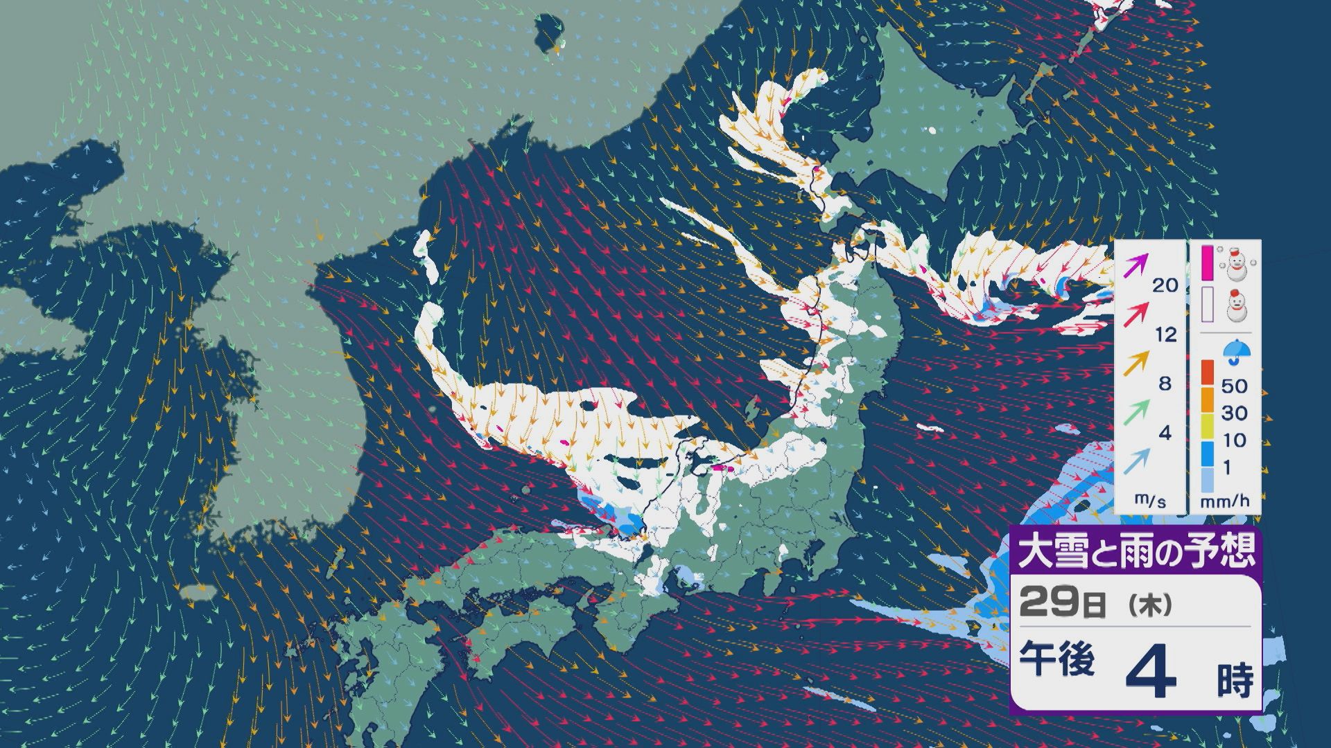 【関東でも、雪か】東北地方と東日本~西日本の日本海側を中心に大雪の見込み【雪のシミュレーション掲載】気象庁 29日~30日予想降雪量 北陸70センチ 東海40センチ 近畿50センチ(~午後6時・多い所)東日本~西日本の太平洋側で大雪になる所も 4時間前