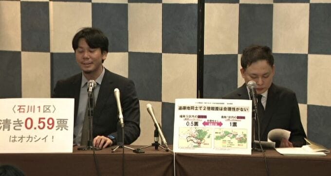 訴えによりますと、8日行われた衆議院選挙では議員1人当たりの有権者数が最も少ない鳥取1区に対して、石川1区では0.59票の価値しかなく、人口比例に基づいた区割りになっておらず、憲法違反と主張しています。