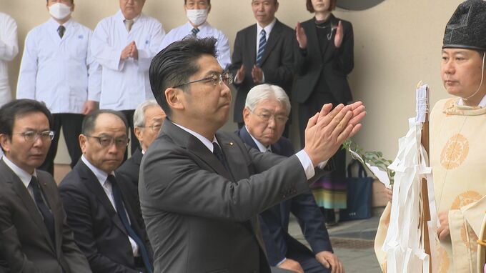 解体を前に、26日はグループの従業員やOB・OGなどおよそ200人が集まり、工事の安全を願うお祓いを執り行いました。