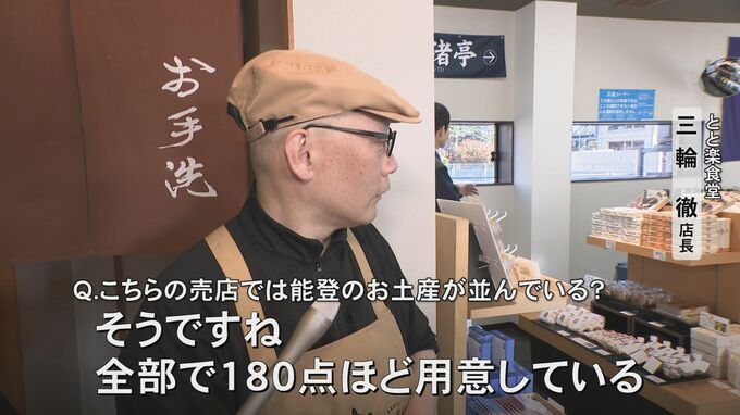 併設された土産店には、能登の菓子や酒、工芸品など地元産にこだわった商品がずらりと並びます。