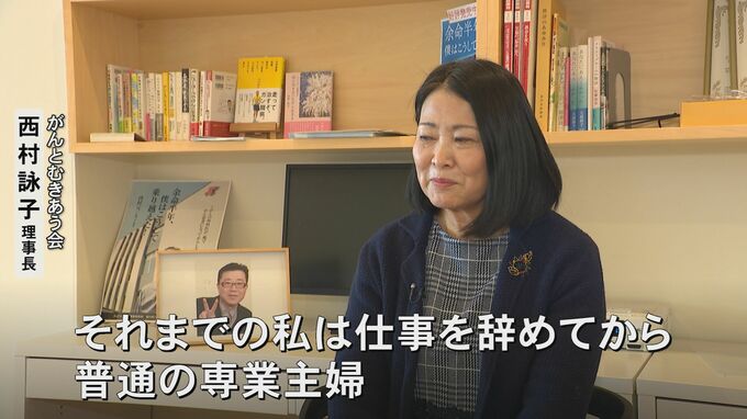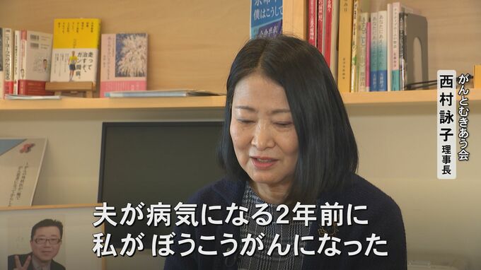 ◇がんとむきあう会・西村詠子理事長…「夫が病気になる2年前に、私、膀胱がん、初期の膀胱がんが見つかって、2年後に夫が病気になったときも、がんになるときの衝撃とか、家族の気持ちとか、もしかしたら自分が死ぬかもしれないと思った気持ちというのは、私も経験したので本当に色々重なり、患者の話を聞くうえですごく役立っている」
