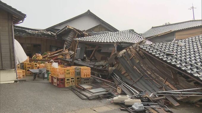 能登半島地震で店舗と蔵が全壊した珠洲市蛸島町の櫻田酒造。