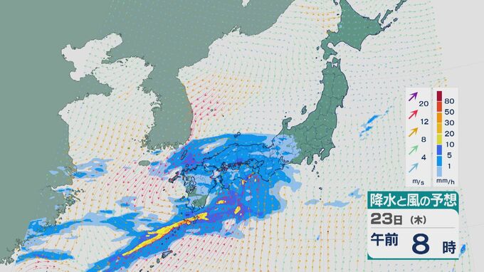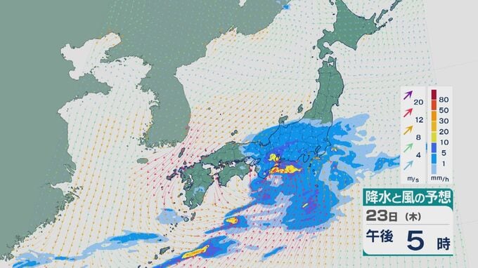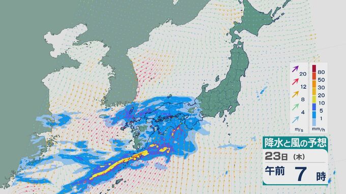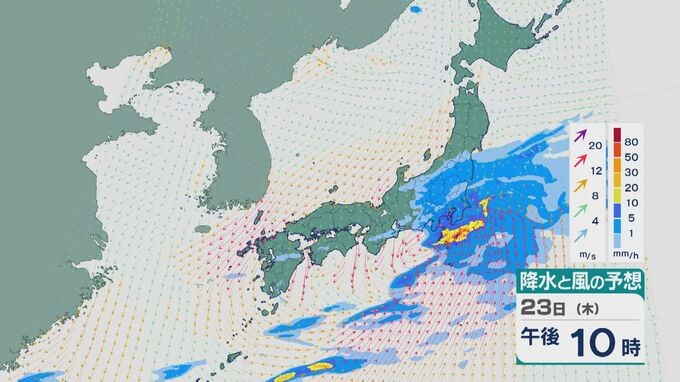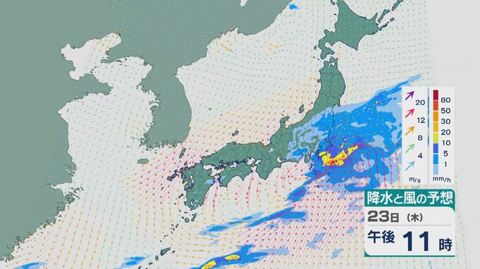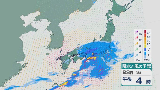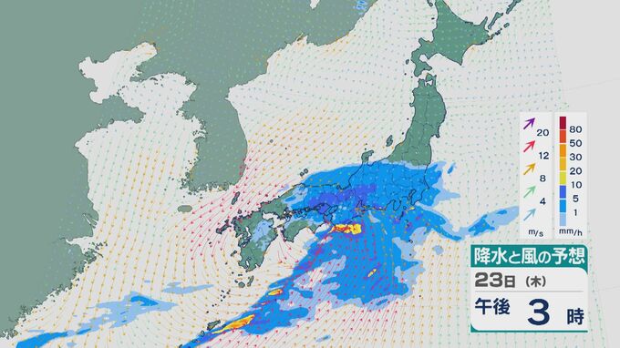 23日(木)以降低気圧が発達しながら日本の南海上を通過 23日は九州から東北まで広範囲でで雨が降り太平洋側沿岸部では雨脚強まるところも 雨と風シミュレーション 2026年4月22日(水) 15:04 石川 23日の昼前から昼過ぎは、東海や北陸、関東でも雨が降る見込みです。西日本の太平洋側沿岸は雨が強まるところもありそうです。 夕方以降は、東海地方の沿岸で雨脚が強まるでしょう。