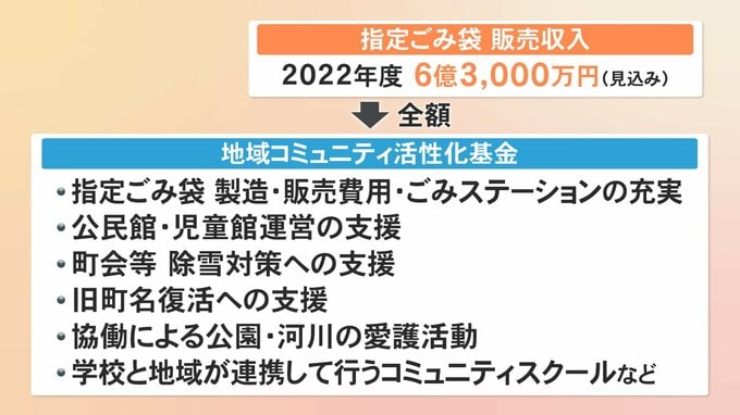 金沢市によりますと、2022年度の指定ゴミ袋の販売収入は6億3000万円を見込んでいて、その収益を地域コミュニティの活性化に充てるということです。