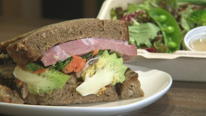 朝食は金沢市長町に店を構える人気の「ひらみぱん」のMinn金沢限定サンドウィッチ。旬の地元野菜がたっぷりと使われています。