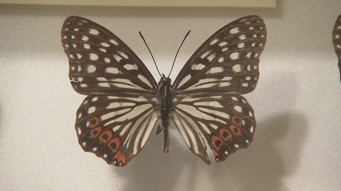 去年12月、本来は中国に分布しているアカボシゴマダラとムネアカハラビロカマキリが県内で発見されたと県ふれあい昆虫館が公表しました。これまで、ゲンゴロウなど数々の新種を見つけてきた職員たち。しかし、今回は少し様子が違うようです。標本があるというので見せてもらいました。