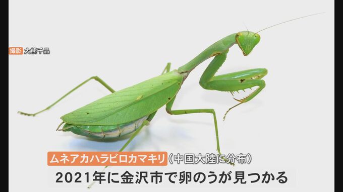 もともとの在来種のカマキリと置き換わってしまう可能性が指摘されているムネアカハラビロカマキリ。金沢市内で見つかった卵は在来種と比べると形が違うのがよくわかります。さらに、白山市で見つかったチョウについては…