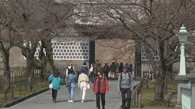 サクラのつぼみが膨らむ金沢城周辺=21日午前