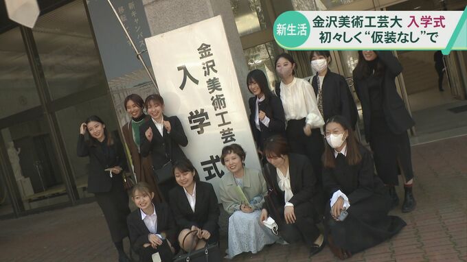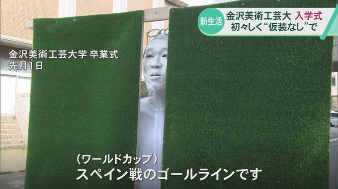 新入生に話を聞くと、「逃げ出したハチ公みたいなのがやりたい。東京から逃げてきたので」といった声や、「陶芸専攻なので、陶器を被って…とか」といった、4年後の卒業式に向けて、はやる気持ちを押さえられない新入生も見られました。